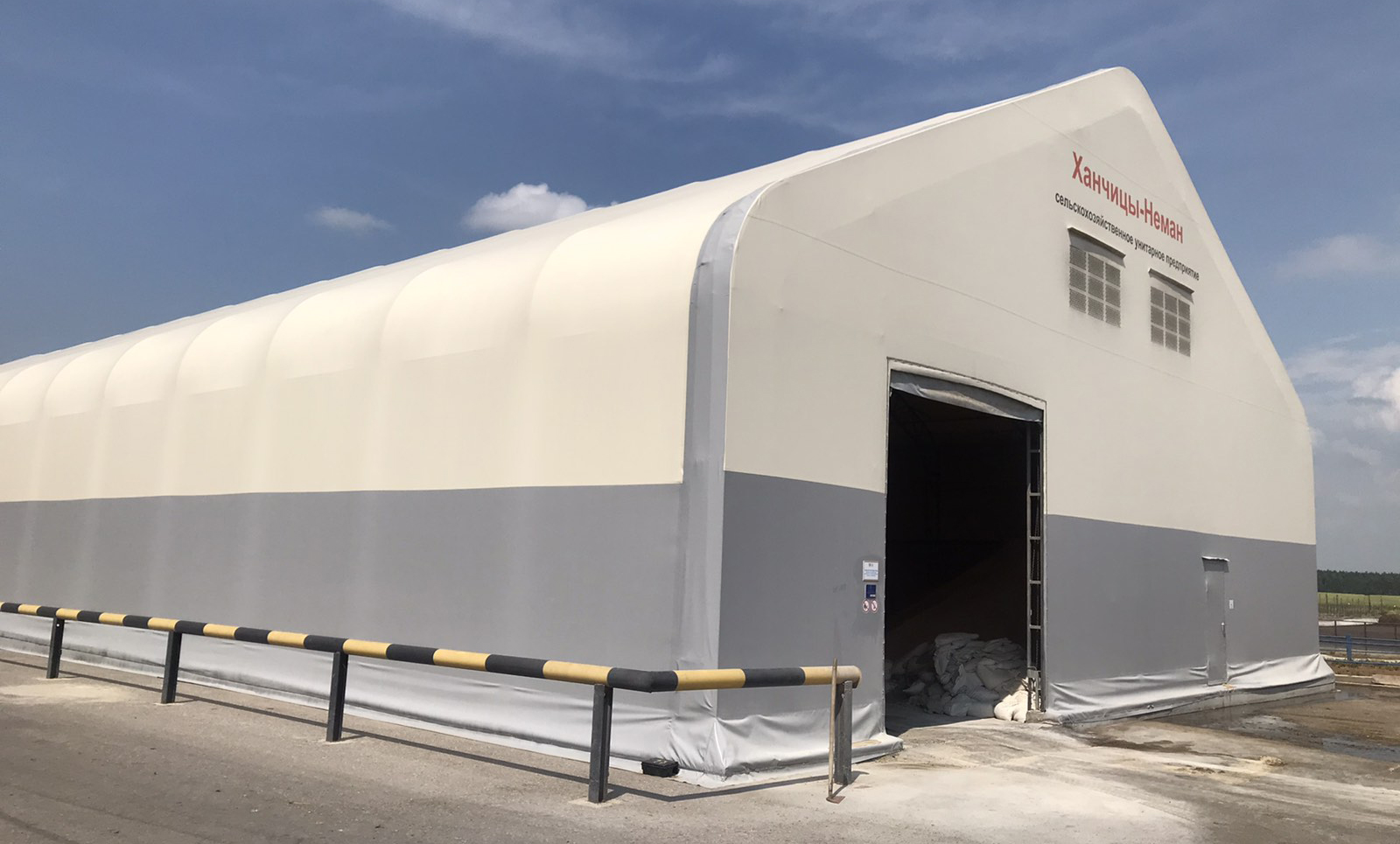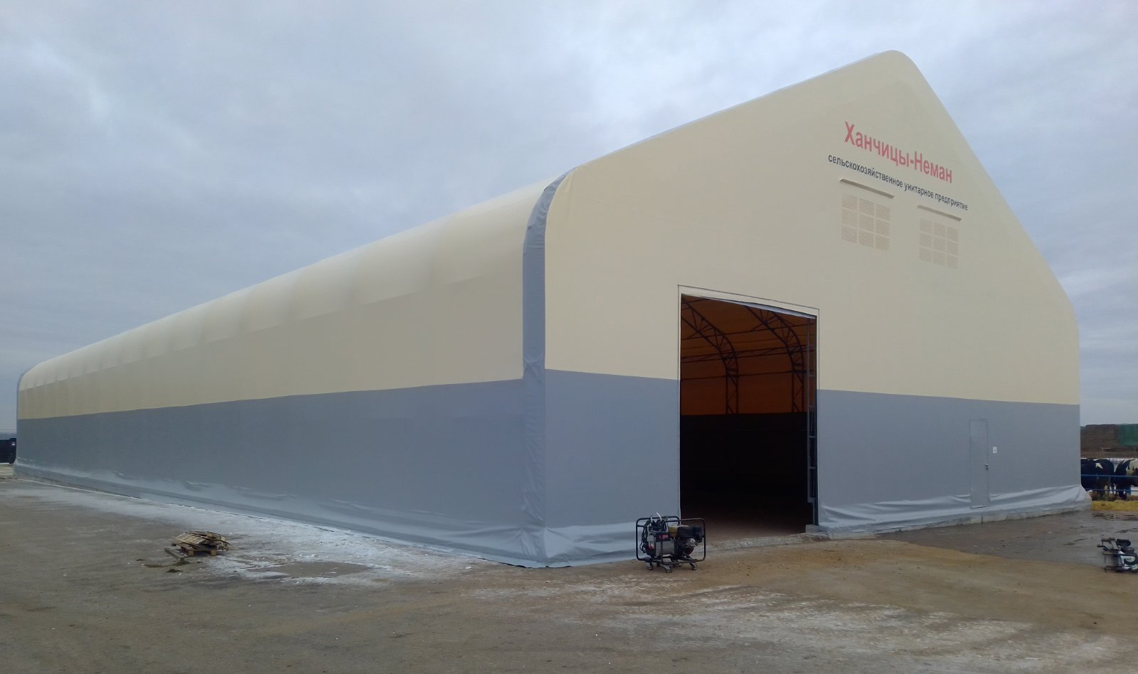 Цифровая УФ-печать на тентовых полотнах позволяет нанести логотип, контакты или рекламное сообщение. Ангар таких размеров виден издалека – это дополнительный канал продвижения вашего бизнеса.